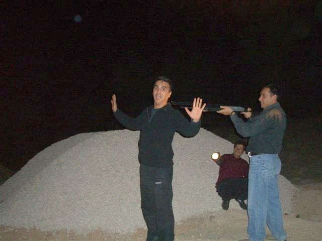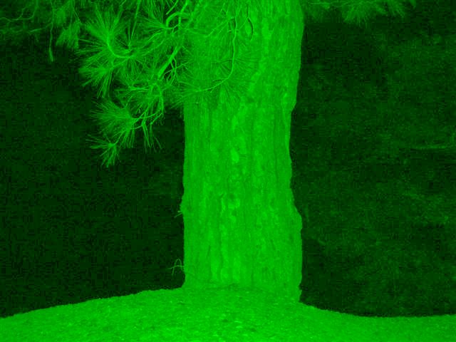 Jetzt wird es ernst. Es geht los! Kanix beoabachtet den gut getarnten Eingang mit einem High-Tech Nachtsichtgerät. |