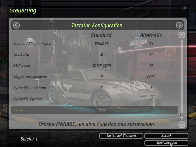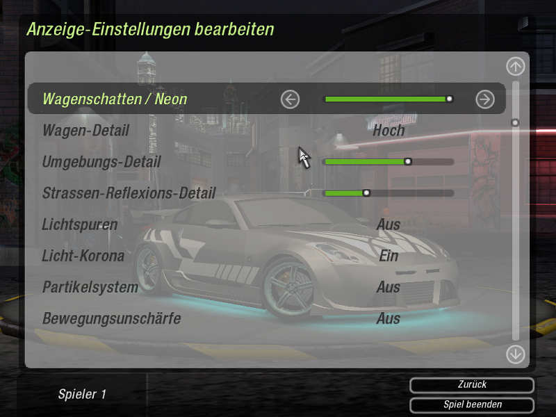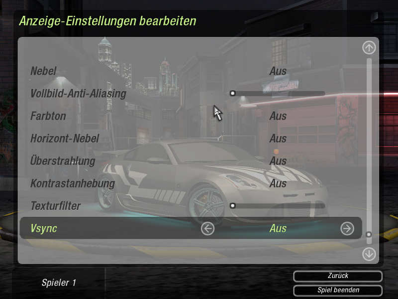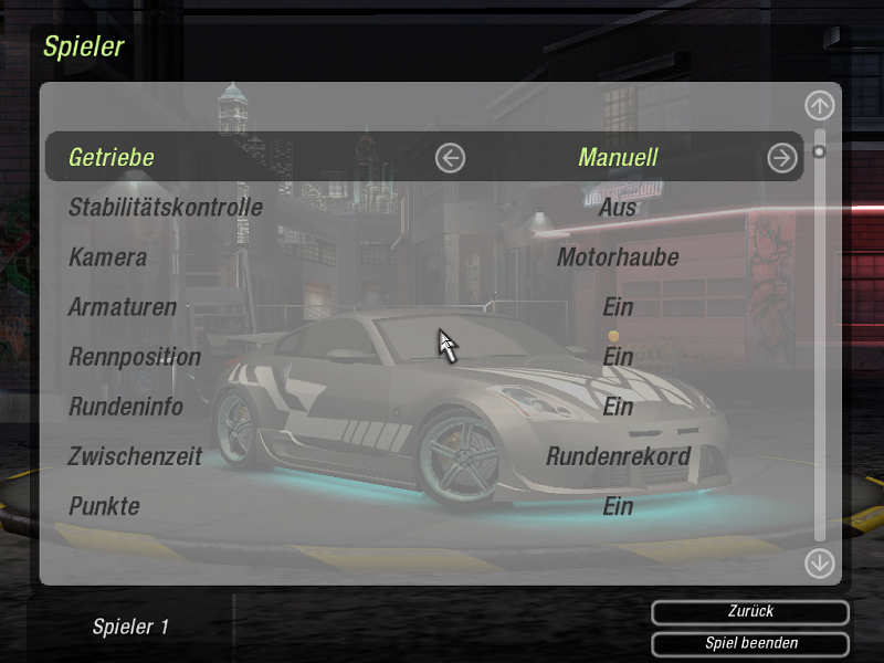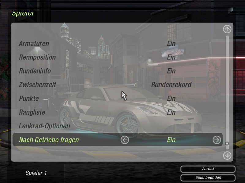 Einstellungen Need For Speed Underground 2 Demo
